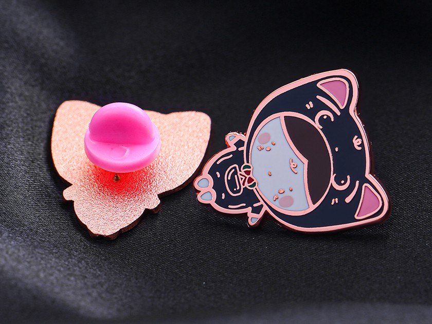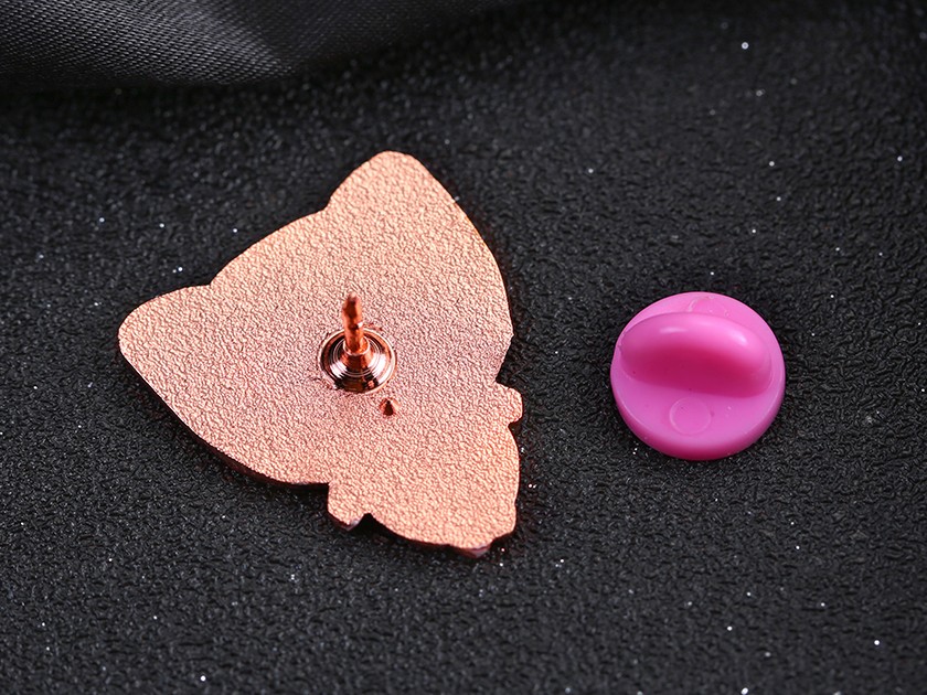 【制作工藝】:沖壓 【上色工藝】:仿琺瑯 【電鍍顏色】:玫瑰金 【背面工藝】:砂底 【產(chǎn)品配件】:橡膠扣